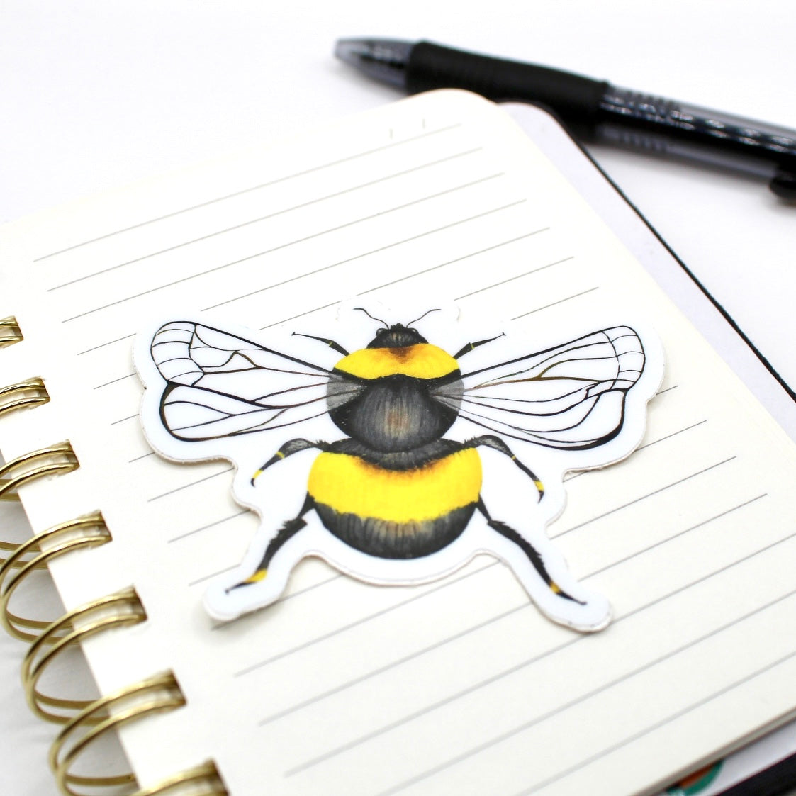 Add flair to daily life with this hand drawn vinyl sticker. With its durable design, its perfect for water bottles, laptops, and so much more! Just apply to any smooth surface. This bee sticker was created from an oil painting and has lots of details and visual texture.