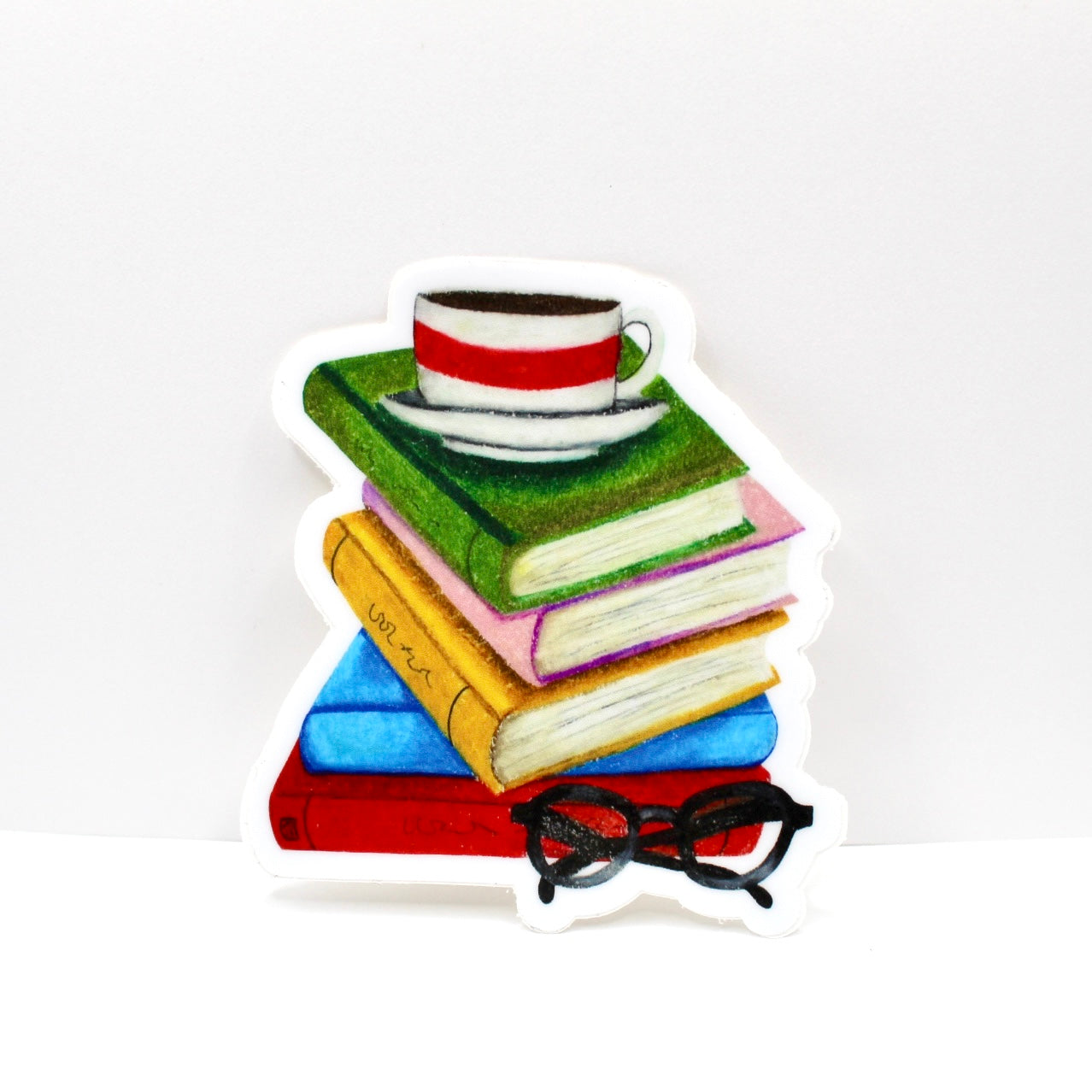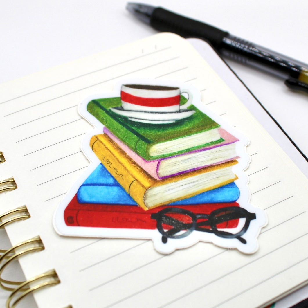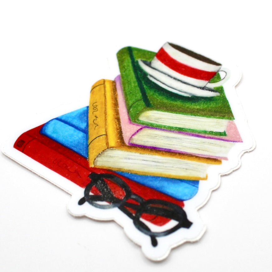 Add flair to daily life with this hand drawn vinyl sticker. With its durable design, its perfect for water bottles, laptops, and so much more! Just apply to any smooth surface. This book sticker was created from an oil painting and has lots of details and visual texture.