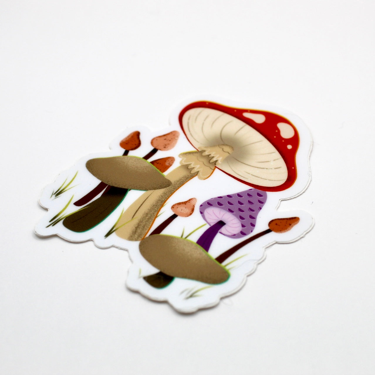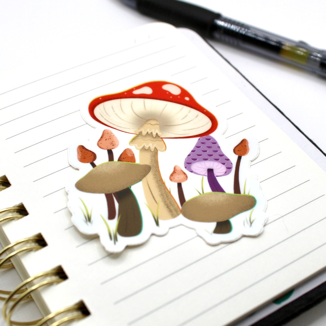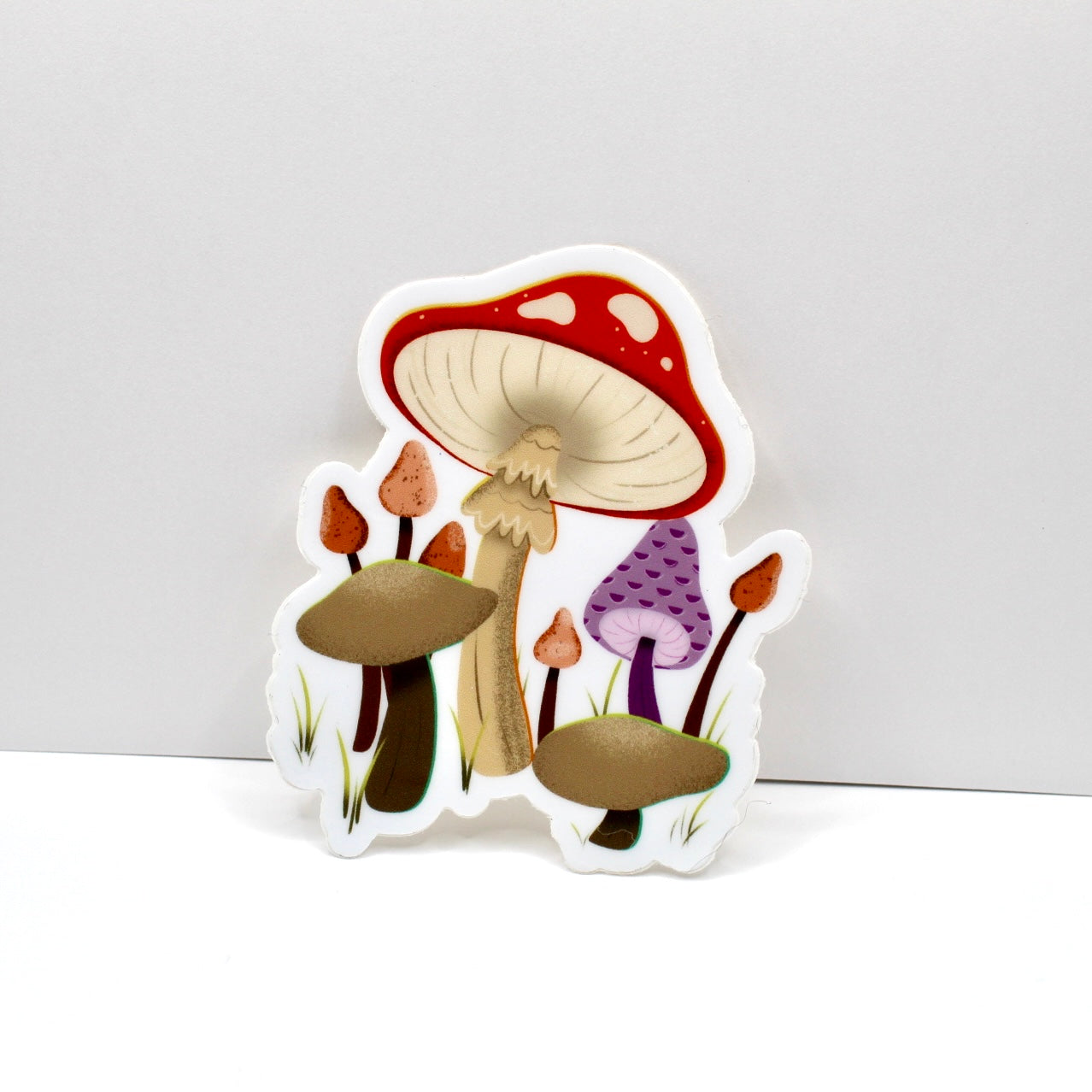 Add flair to daily life with this hand drawn vinyl sticker. With its durable design, its perfect for water bottles, laptops, and so much more! Just apply to any smooth surface. This sticker features a variety of mushrooms and lots of detail.