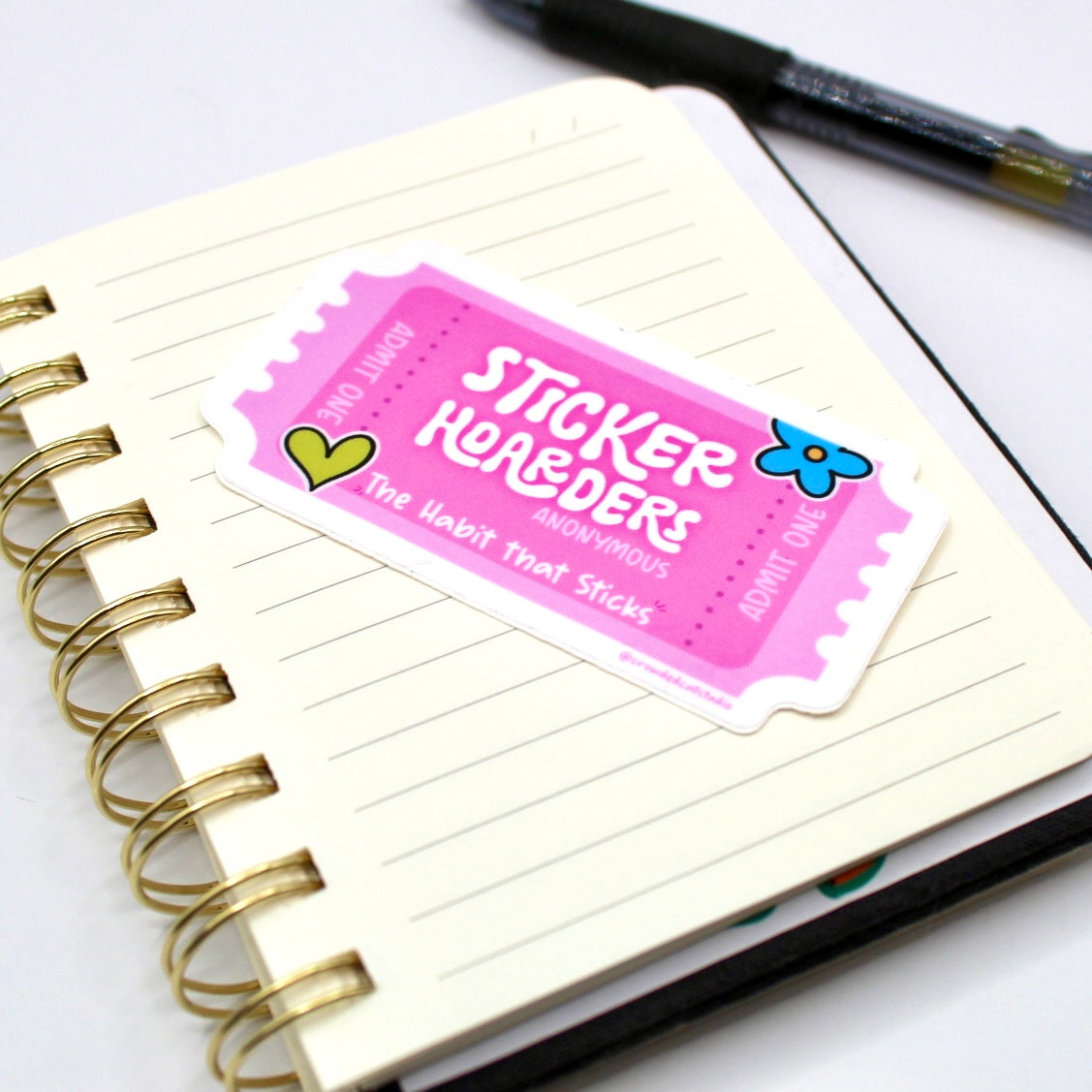 Add flair to daily life with this hand drawn vinyl sticker. With its durable design, its perfect for water bottles, laptops, and so much more! Just apply to any smooth surface. It features bright colors and a simple, clean outline. This is a one way ticket to Sticker Hoarders Anonymous! Perfect for the sticker lover in your life.