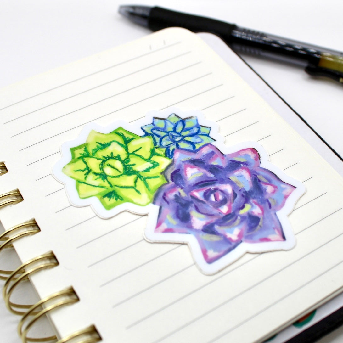 Add flair to daily life with this hand drawn vinyl sticker. With its durable design, its perfect for water bottles, laptops, and so much more! Just apply to any smooth surface. This succulent sticker was created from an oil painting and has lots of details and visual texture.