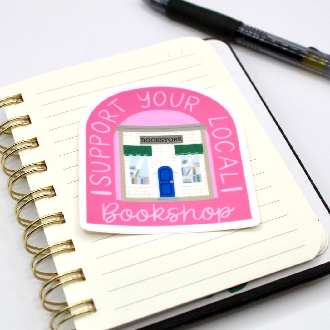 Add flair to daily life with this hand drawn vinyl sticker. With its durable design, its perfect for water bottles, laptops, and so much more! Just apply to any smooth surface. It features bright colors and a simple, clean outline. Tell everyone to support their local bookshop with this cute sticker.