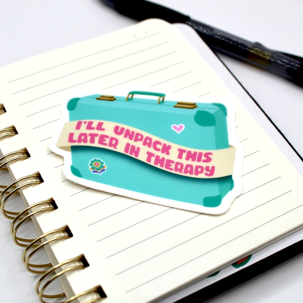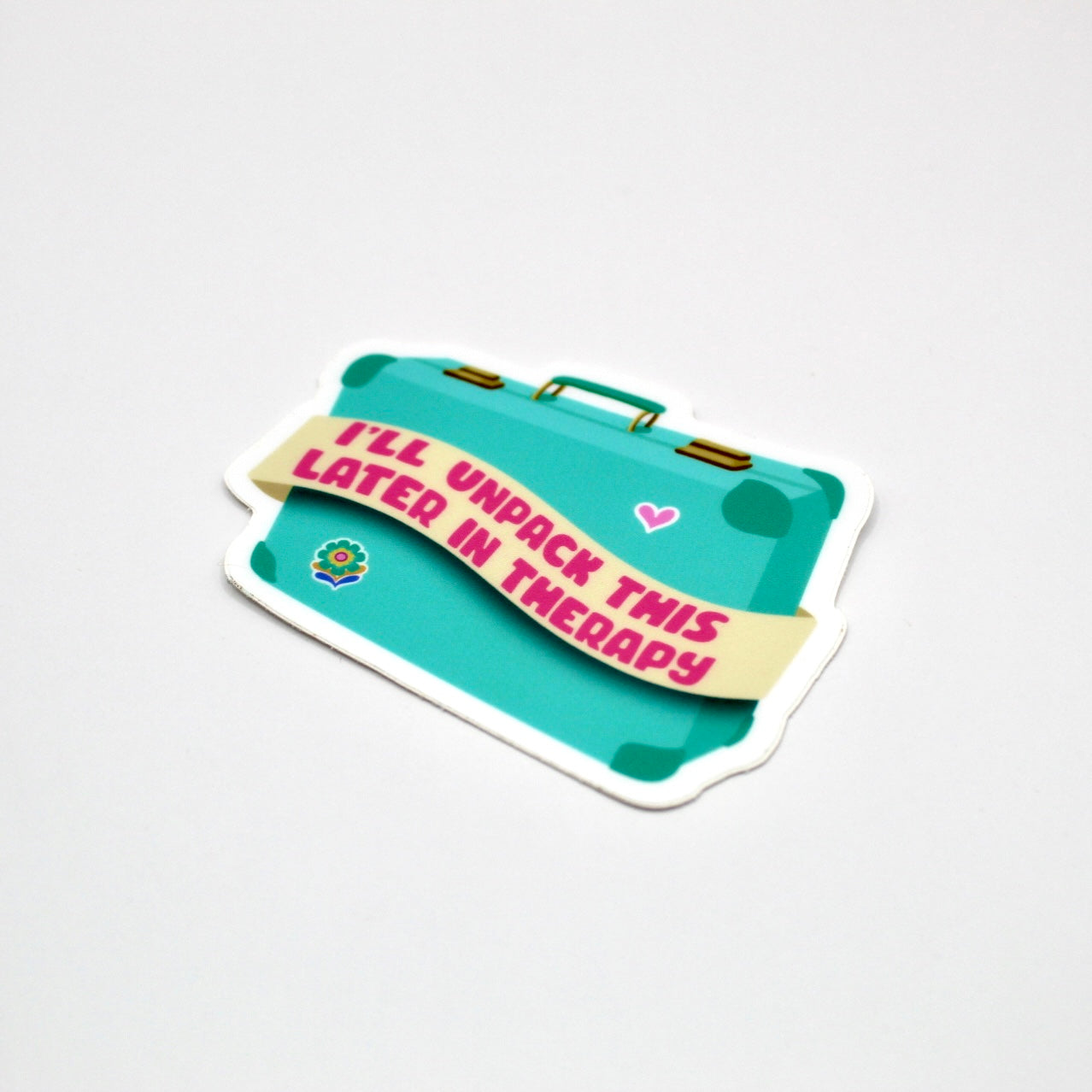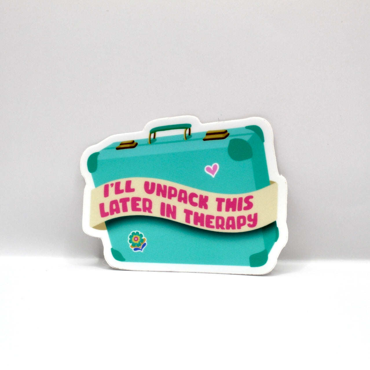 Add flair to daily life with this hand drawn vinyl sticker. With its durable design, its perfect for water bottles, laptops, and so much more! Just apply to any smooth surface. It features bright colors and a simple, clean outline. A suitcase full of trauma...I'll unpack this later in therapy.